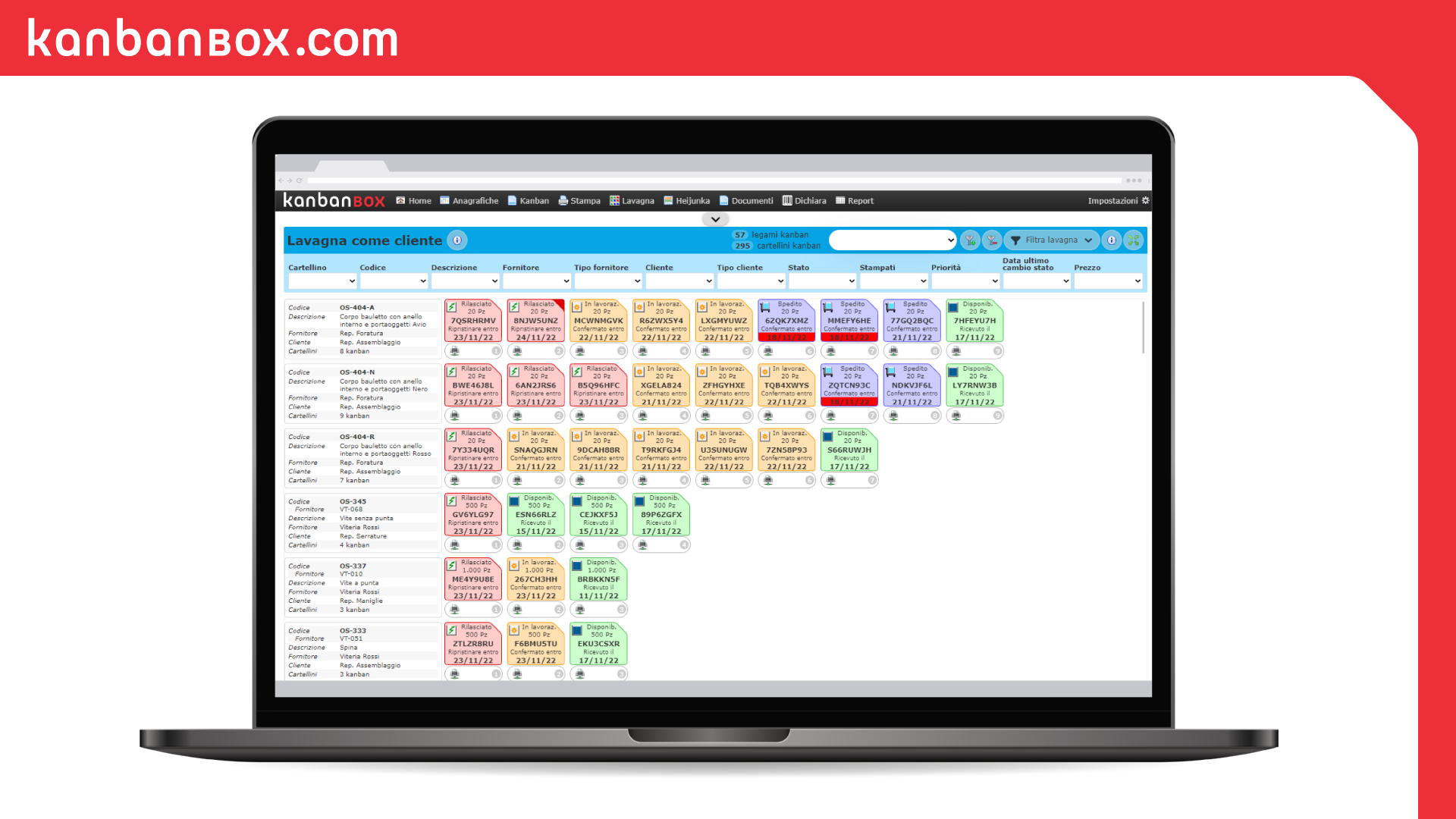 KanbanBOX è più di un semplice software: è uno strumento di collaborazione aziendale ed extra aziendale che si prefigge di diffondere valore lungo la lean supply chain. KanbanBOX è sfida, miglioramento, rivoluzione del metodo lean, riflesso dello spirito innovativo della nostra azienda.