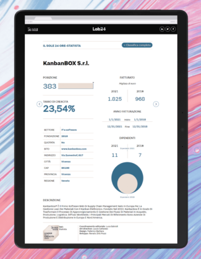 KanbanBOX rientra quindi nella classifica nazionale con un tasso di crescita complessivo registrato superiore al 20%, confermandosi tra le aziende italiane che, dal 2018 al 2021, hanno registrato un aumento: