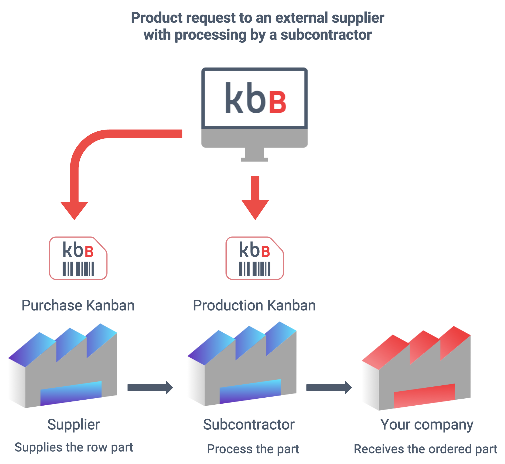Similarly to the previous use case, multiprocess kanban can also be applied when part of the production flow is handled by external suppliers or subcontractors.