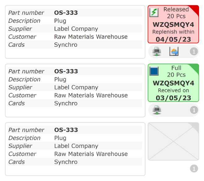 Simply put, Synchro Cards are used for time-bound and specific orders. Once the orders are fulfilled, the cards disappear from the Kanban board. Indeed, they don’t trigger a replenishment process, differently from the Kanban cards.