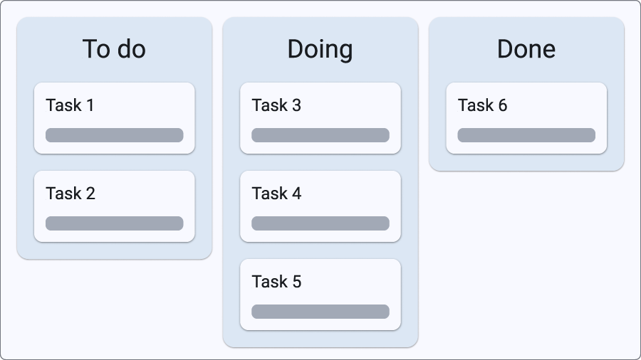 - Columns representing activity states (e.g., to-do, in-progress, completed)